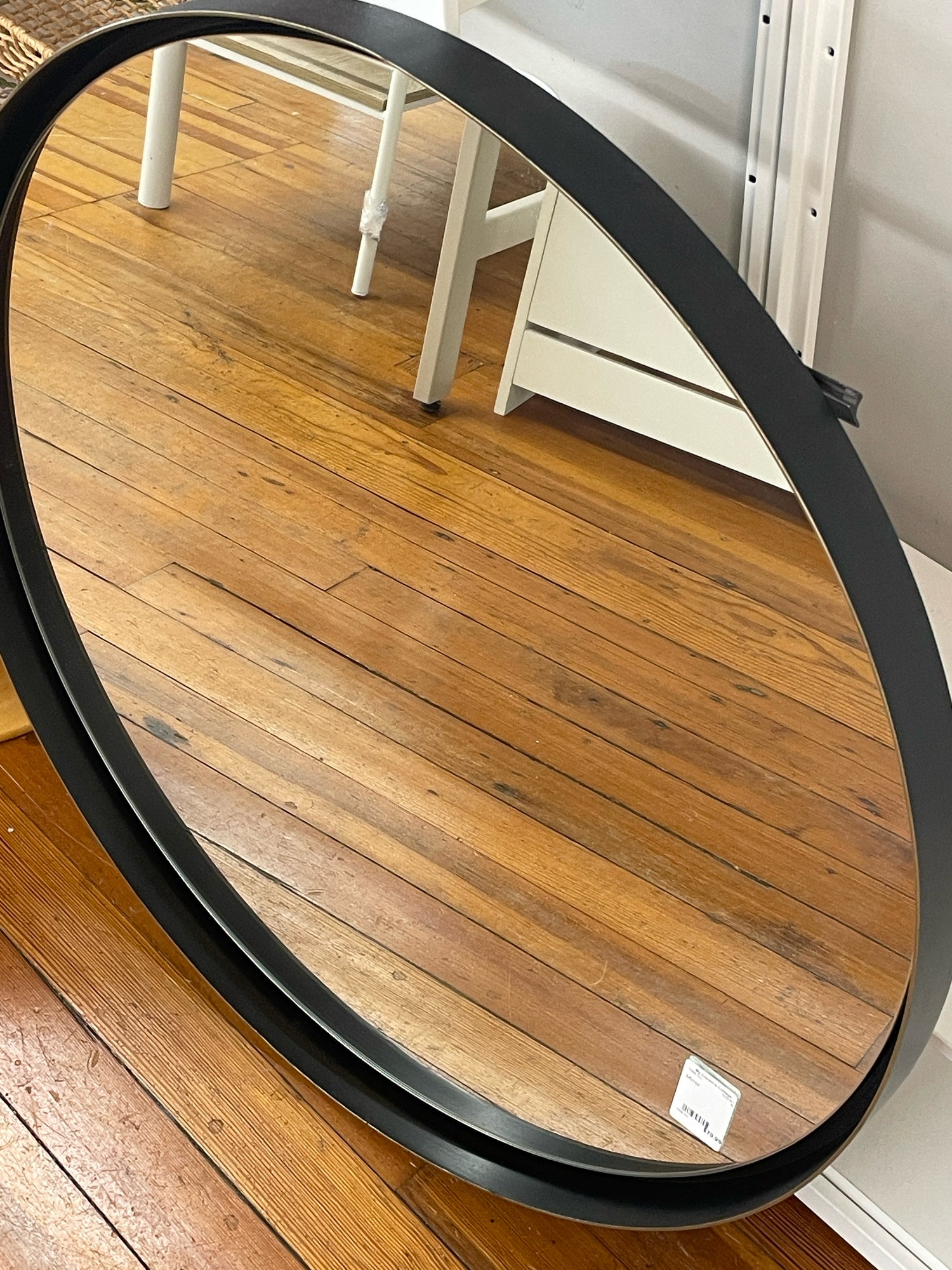 Round mirror in black frame 33"r
