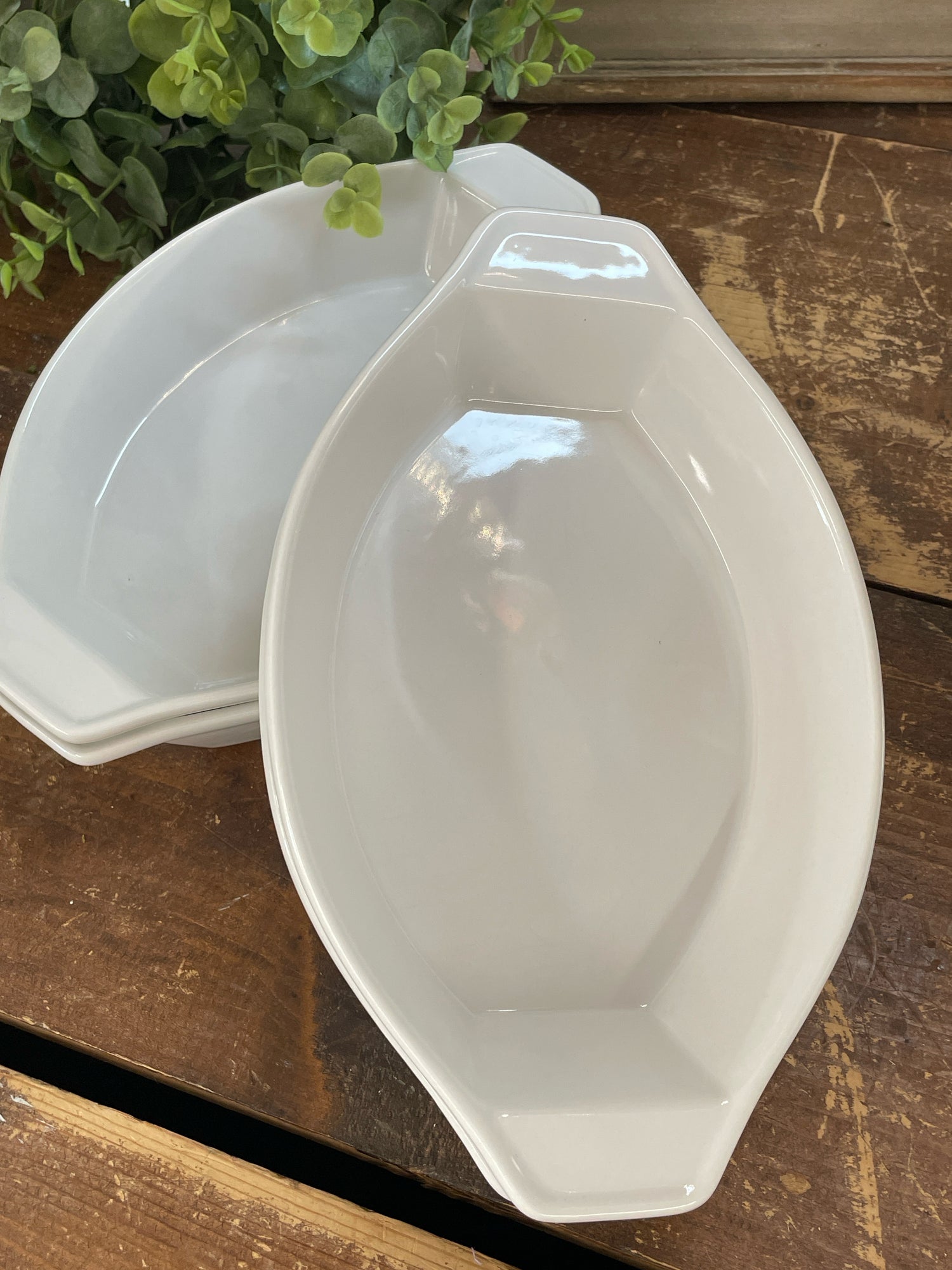 White oval au gratin casserole bowls