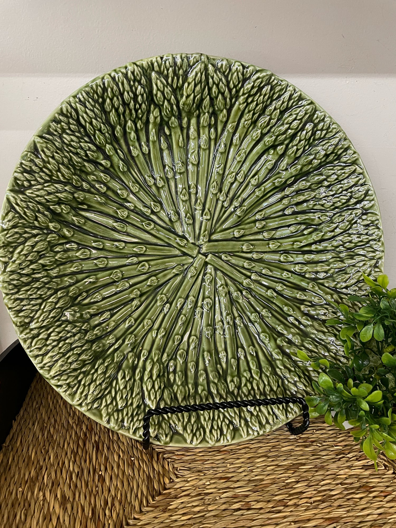 Round green asparagus texture platter