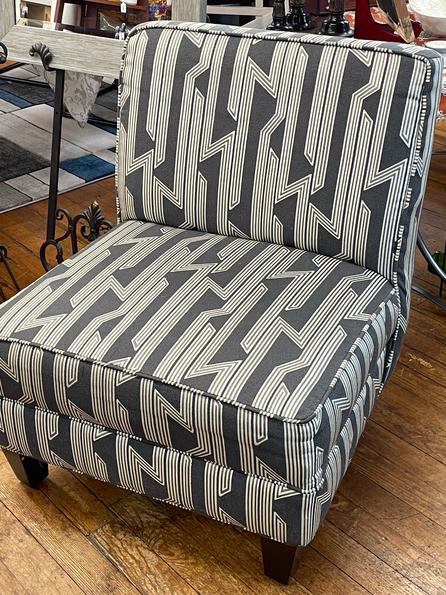 Gray/cream armless upholstered accent chair