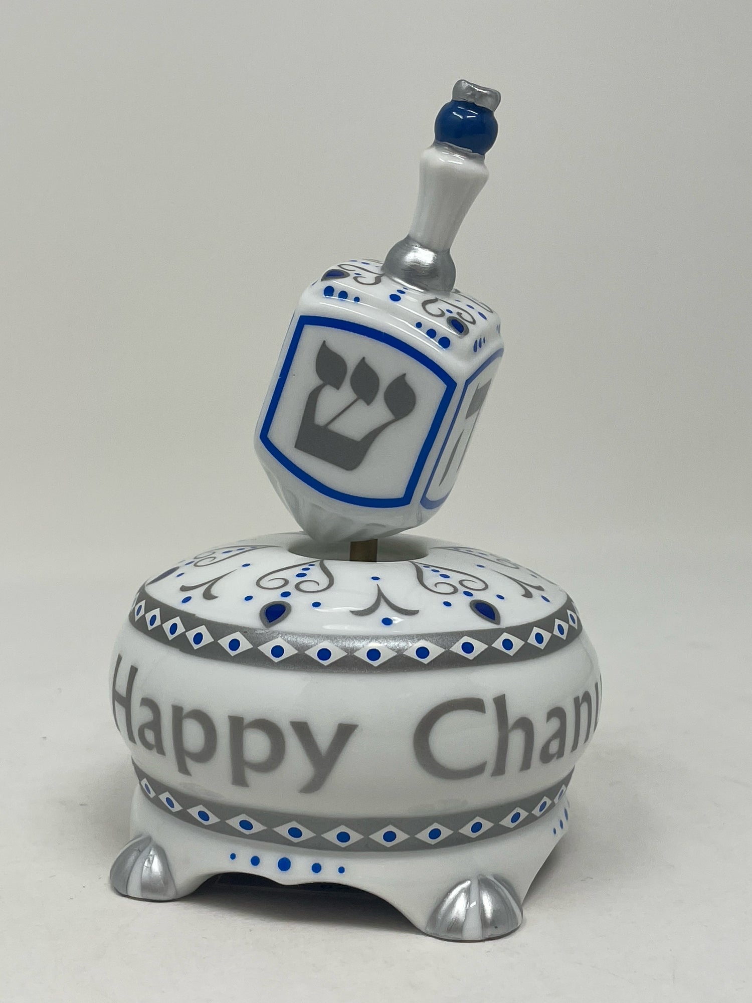 White/blue/gray dreidel, "chanukah" ceramic music box