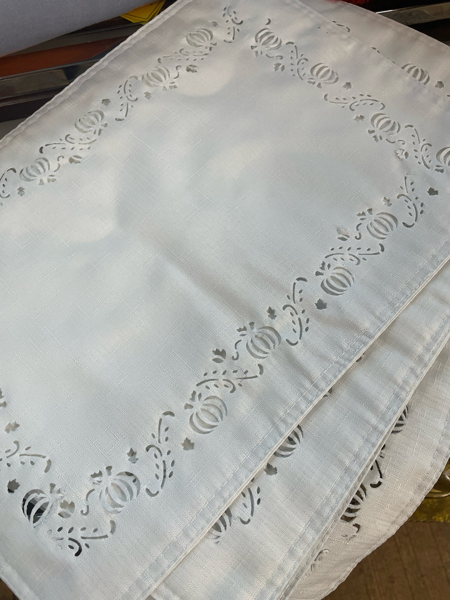 White placemats with pumpkin cutouts