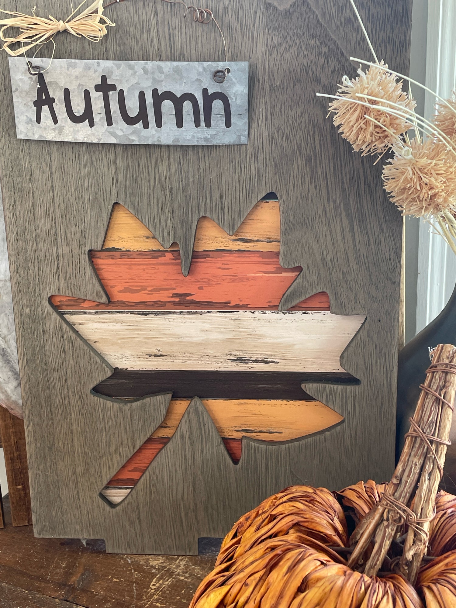 Pallet sign with fall leaf, metal "autumn"